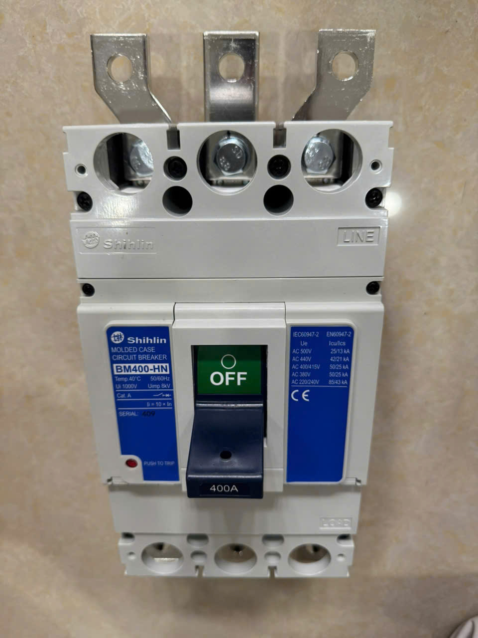 12 Tháng ( theo quy định của nhà SX )MCCB SHIHLIN BM400-HN 3P 400A 50kA