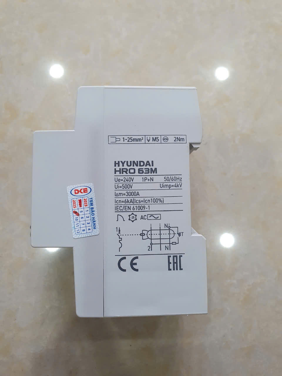 12 Tháng ( theo quy định của nhà SX )RCBO HYUNDAI HRO63M 1P+N 25A 30mA 6kA