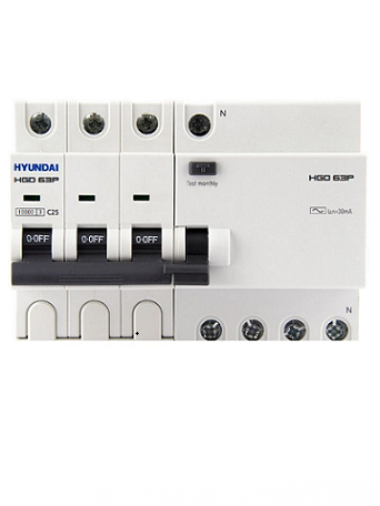 12 thángRCBO HYUNDAI HRO63P 3P+N 16A 30mA 10kA