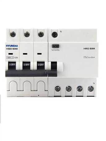 12 thángRCBO HYUNDAI HRO63M 3P+N 20A 30mA 6kA