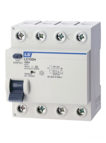 12 thángRCCB LS LC100H 3P+N 40A 30mA hoặc 100mA hoặc 300mA 10kA