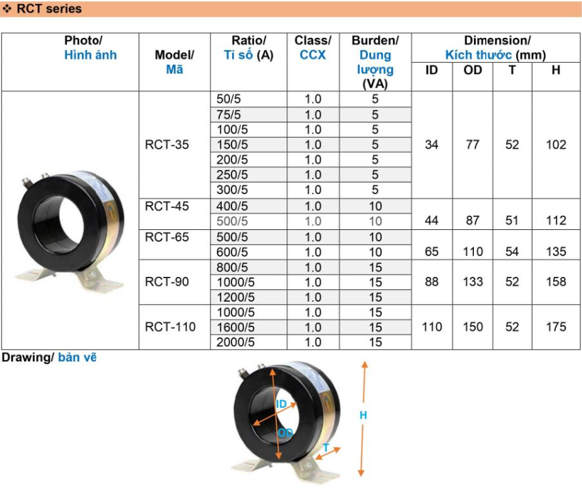 Biến dòng đo lường hạ thế MASTER RCT-110 1000/5A CL1 15VA