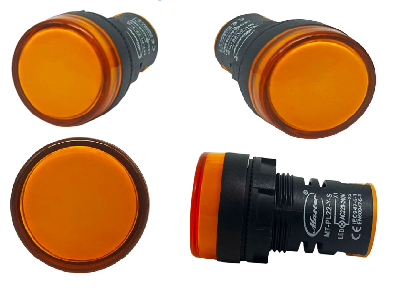 Đèn báo led MASTER Ø22 màu vàng loại đầu phẳng ( MT-PL22-Y-S )