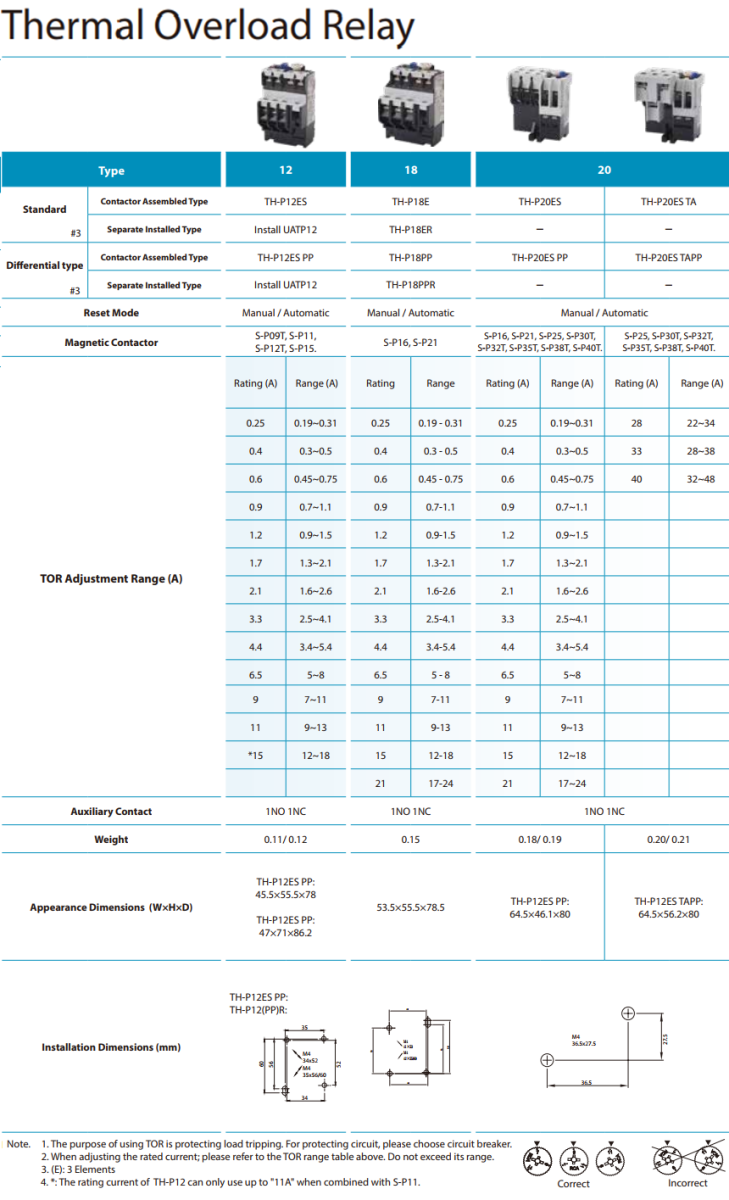 - Mã SP: TH-P12ES 0.25(0.19~0.31)A