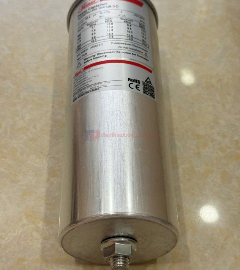 - Tụ bù loại tròn 3 pha điện áp 450V gồm các dãi công suất: 10KVAr, 15KVAr, 20KVAr, 25KVAr, 30KVAr 40KVAr 50KVAr, 60KVAr
