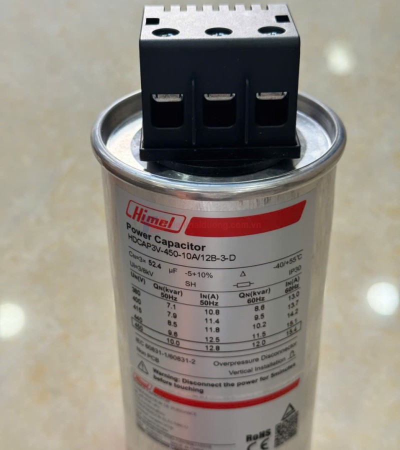 Tụ bù tròn HIMEL 3P 10KVAr 450V - HDCAP3V451001203D