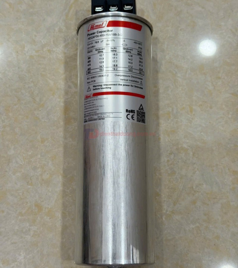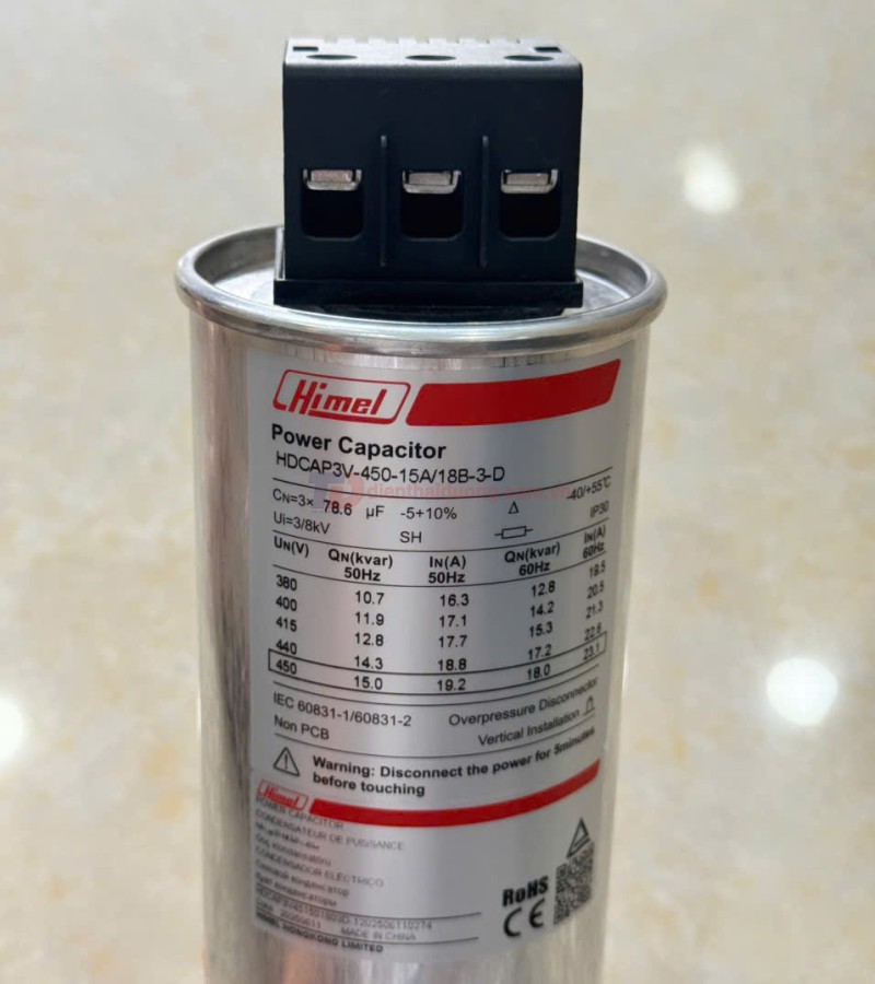 Tụ bù tròn HIMEL 3P 15KVAr 450V - HDCAP3V451501803D