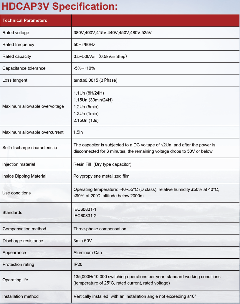 - Tụ bù loại vuông 3 pha điện áp 450V gồm các dải công suất: 5KVAr, 10KVAr, 15KVAr, 20KVAr, 25KVAr, 30KVAr 40KVAr 50KVAr, 60KVAr