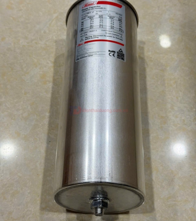 - Tụ bù loại tròn 3 pha điện áp 450V gồm các dãi công suất: 10KVAr, 15KVAr, 20KVAr, 25KVAr, 30KVAr 40KVAr 50KVAr, 60KVAr