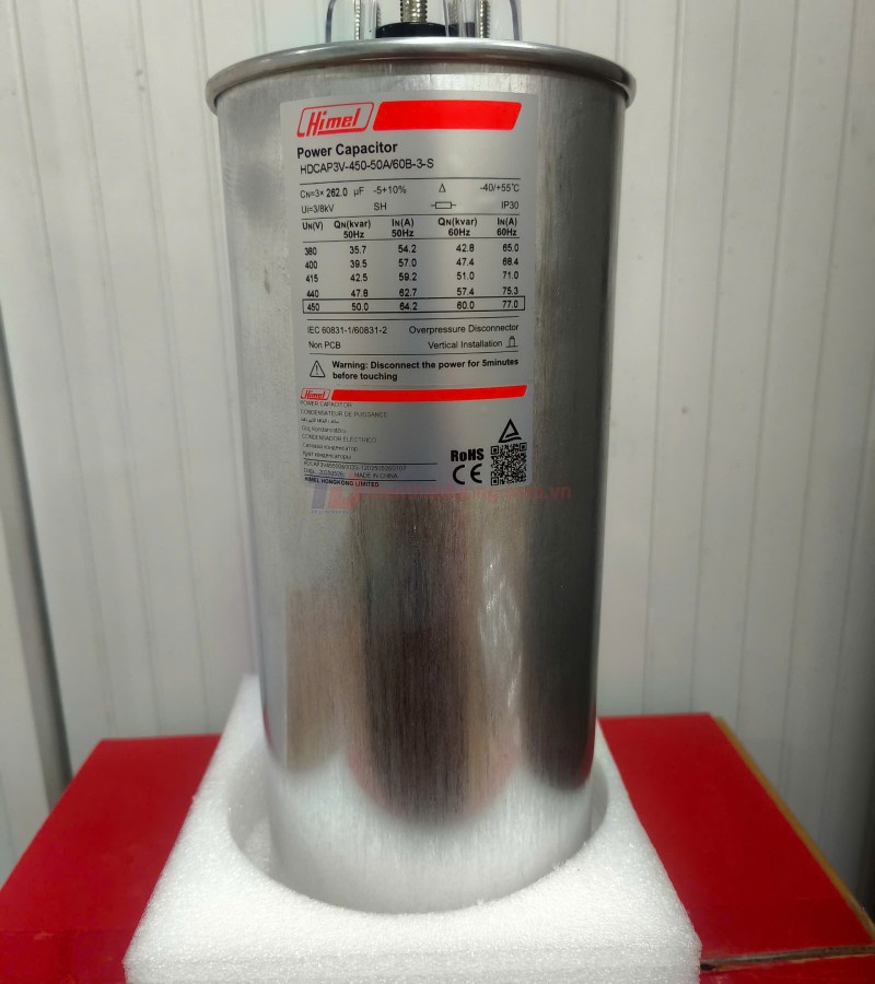 Thông số kỹ thuật Tụ bù tròn 3P Himel: