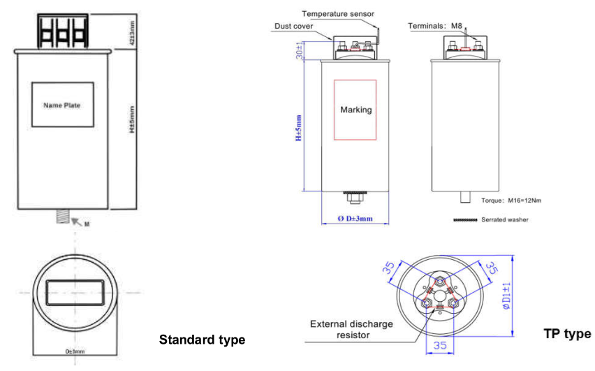 Kích thước Tụ bù khô loại tròn 3P MASTER: