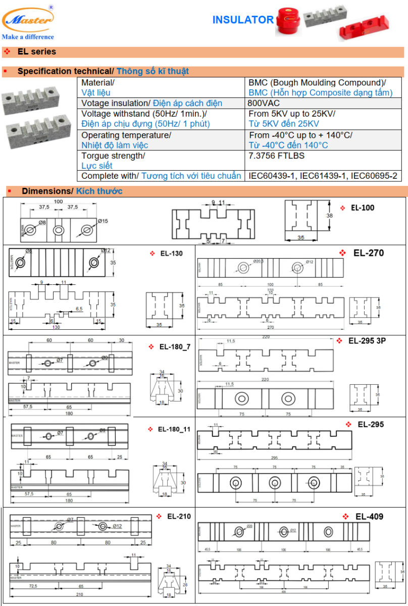12 Tháng ( theo quy định của nhà SX )Thanh đỡ Busbar MASTER loại EL-180_7