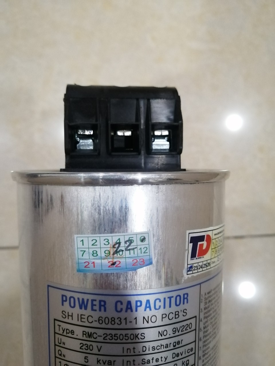 - Tụ khô (loại tròn) 1 pha điện áp 230V gồm các dãi công suất: 2.5, 5, 10KVAr