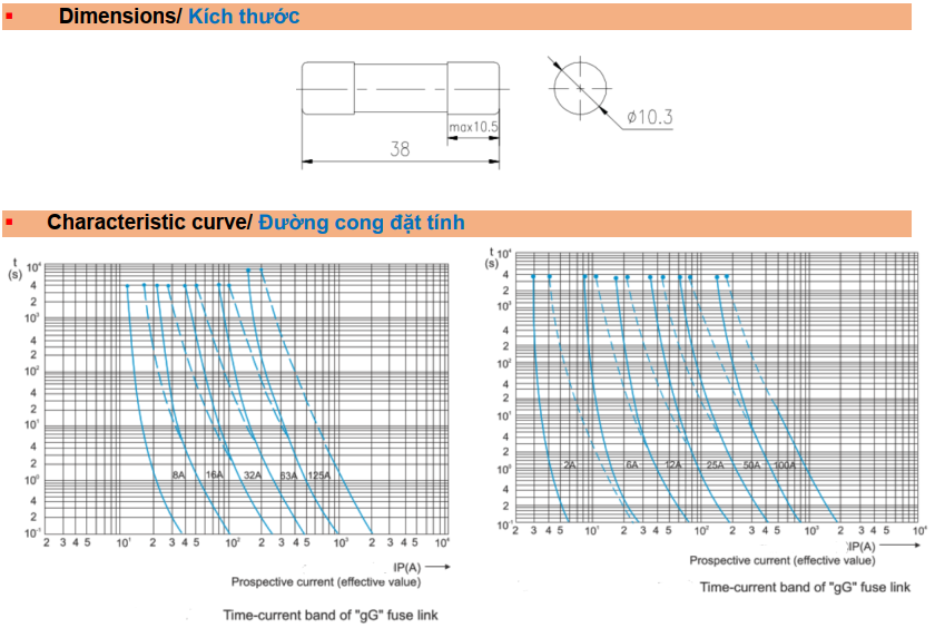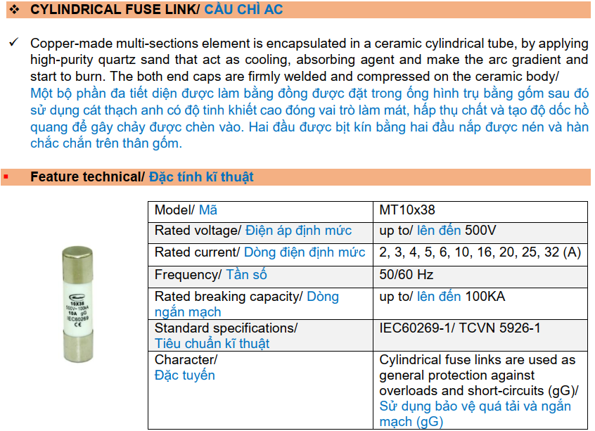 Kích thước Cầu chì MT 10x38 của MASTER: