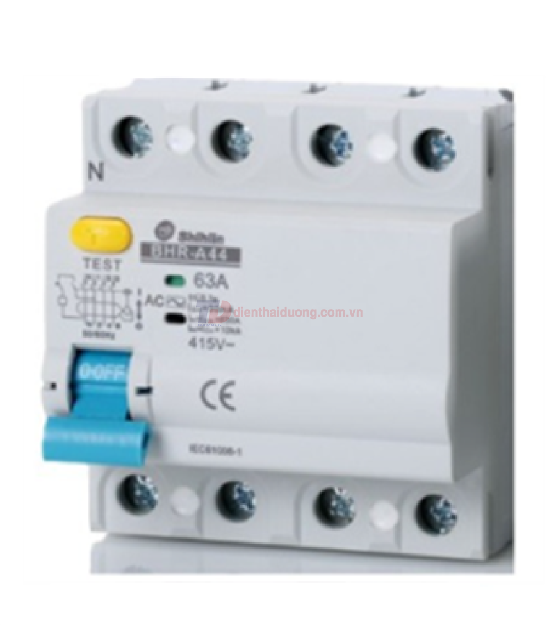 RCCB (Aptomat chống rò) SHIHLIN loại 1P+N hoặc 3P+N dòng định mức từ 25A đến 63A có khả năng chịu dòng ngắn mạch 6kA hoặc 10kA, dòng rò bảo vệ: 30mA 100mA 300mA dùng bảo vệ chống chống dòng rò rỉ điện cho hệ thống điện dân dụng.